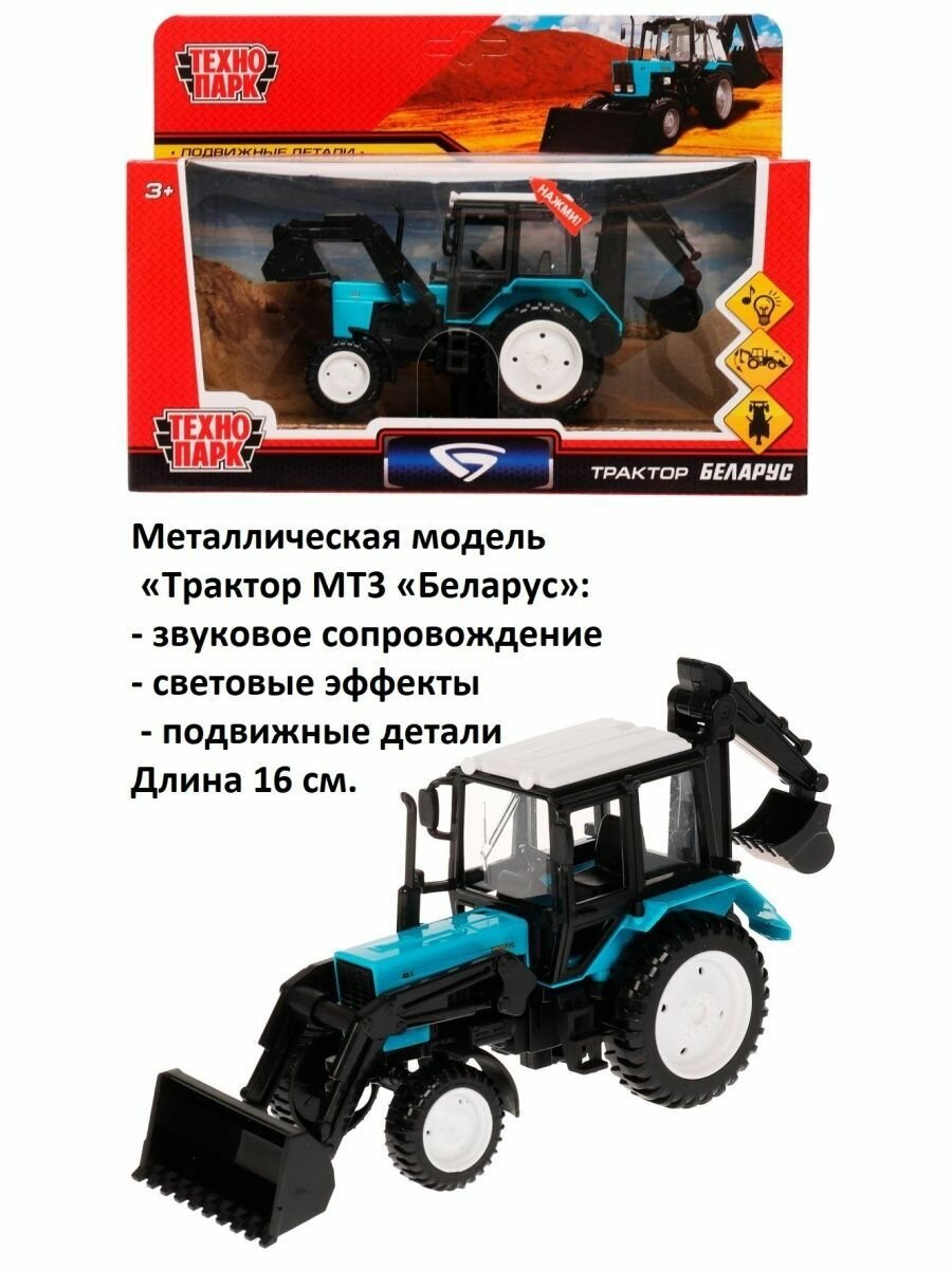 Купить Модель металл свет-звук МТЗ трактор "беларус" 11 см, подв. элем, син, кор. Технопарк в кор.2*36шт