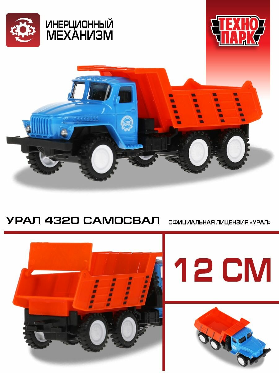 Машина металлическая инерционная урал 4320 самосвал 12 см Цвет Оранжевый/Синий технопарк 2003C092-R