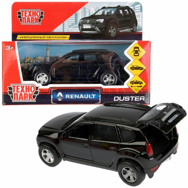 | Комплектация | Металлическая машина "RENAULT DUSTER" - новинка ТМ "Технопарк" - порадует и ребёнка, и коллекционера выдержанным стильным концептом серебристого цвета, скоростью и функциями 3 в 1: - открывающиеся двери - открывается багажник - инерционный механизм (потяните машинку на себя - отпустите, и она тут же поедет) Машинка "RENAULT DUSTER" выполнена с учётом всех особенностей прототипа |