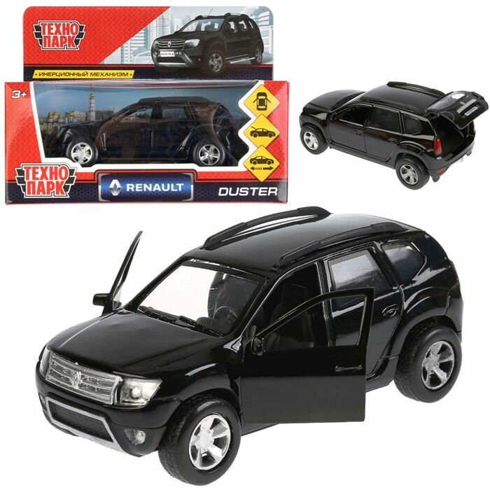 Купить Модель Инерционная Технопарк Renault Duster (12см, металл, открываются двери, черная, в коробке) DUSTER-BK, (Shantou City Daxiang Plastic Toy Products Co., Ltd)