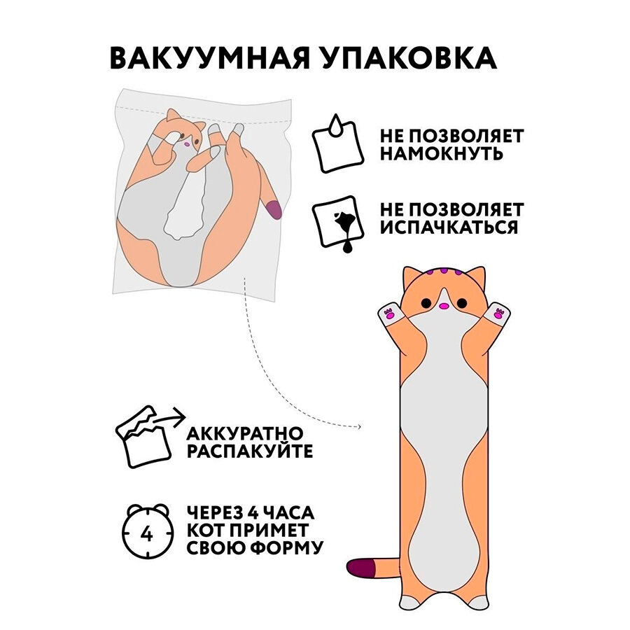 Длинная подушка-кот 130см / мягкая игрушка для детей / Кот-батон длинный /Кошка-подушка большая Кот - сосиска