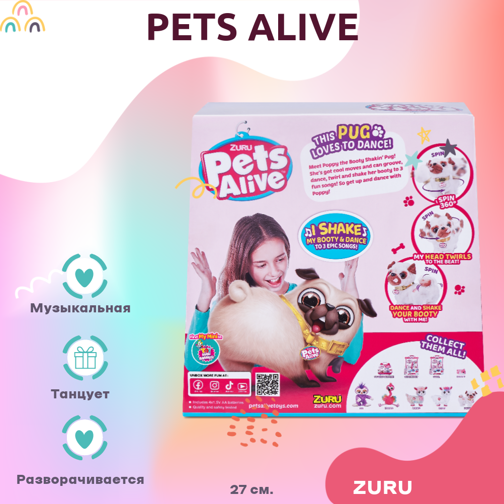 Купить Интерактивная игрушка ZURU PETS ALIVE Poppy The Booty Shakin’Pug / Танцующий щенок со звуковыми эффектами, игрушки для девочек, 9521