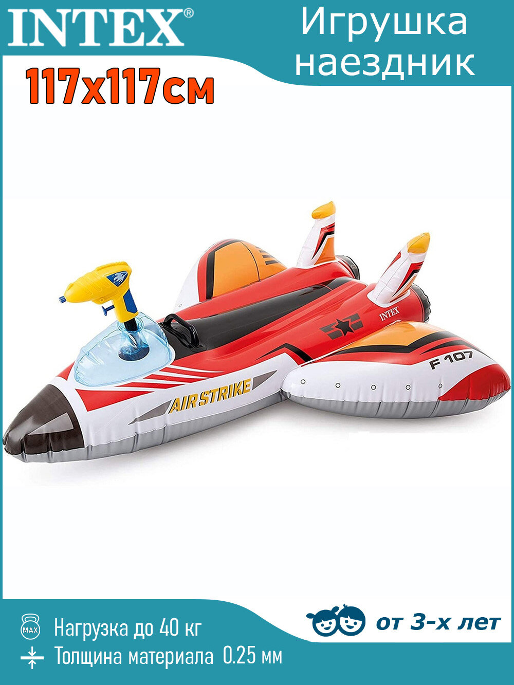 Ниже Вы можете прочитать отзывы на INTEX Надувная игрушка с водяным пистолетом Самолёт Air Strike 117*117 см, голубой 57536, ознакомится с подробными характеристиками, посмотреть интересные обзоры и фотографии на INTEX Надувная игрушка с водяным пистолетом Самолёт Air Strike 117*117 см, голубой 57536.