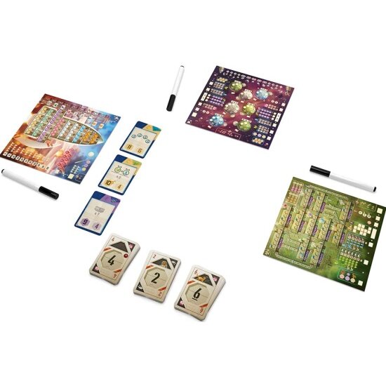 | Комплектация | 63 карты звездолётов; 48 карт миссий; 6 стирающихся маркеров;11 карт для соло-режима ASTRA; 1 карта капитана с маркерной поверхностью для приключения № 8 и режима кампании; 24 двусторонних игровых поля с маркерной поверхностью: 6 наборов из 4 полей с разными приключениями на каждой стороне (приключения пронумерованы от 1 до 8); 97 карт для режима кампании. |
