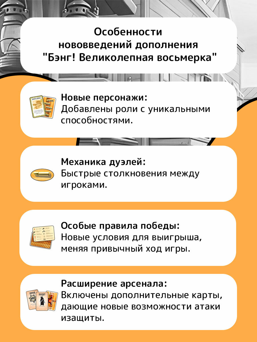 Настольная игра Hobby World Бэнг! : Великолепная Восьмерка интересное: