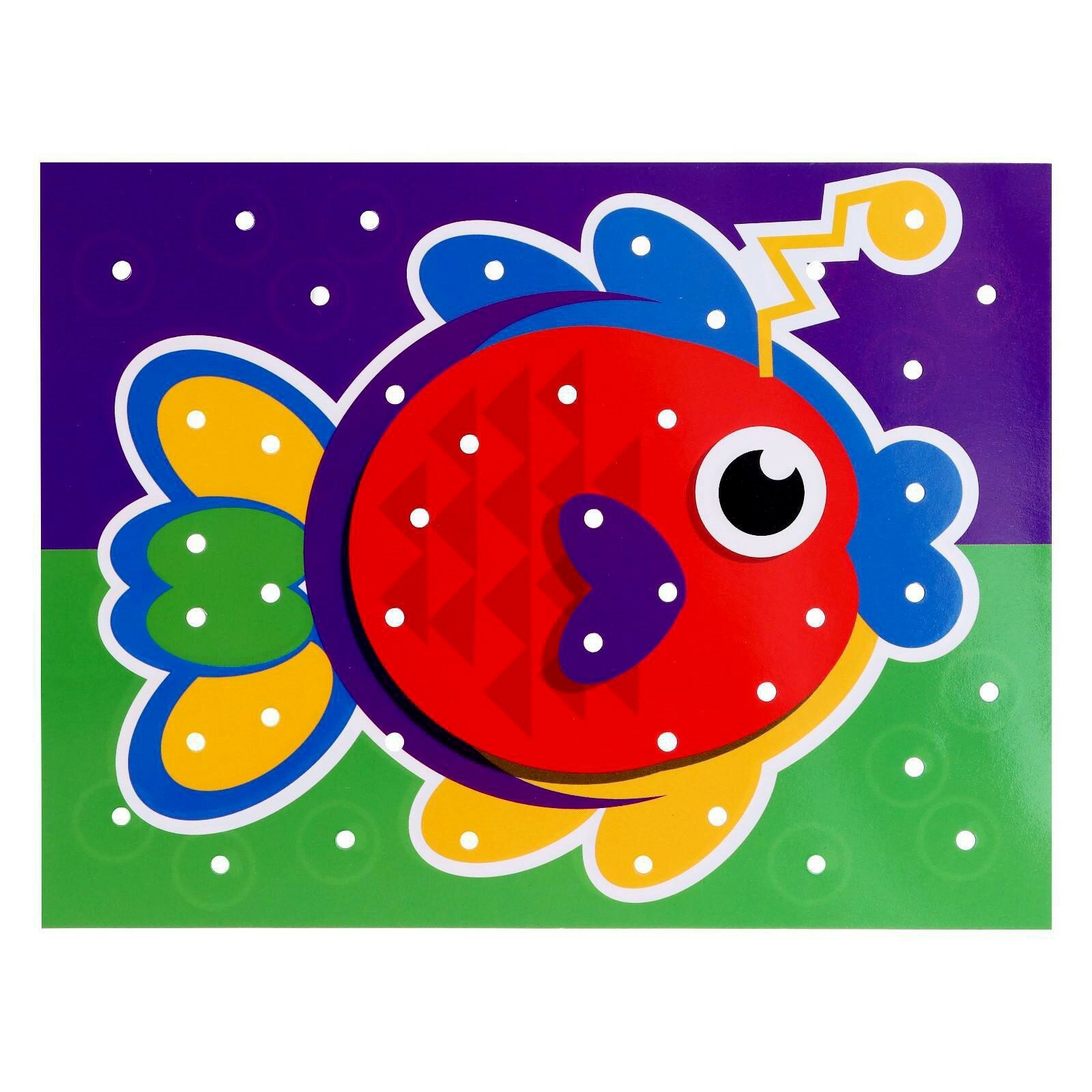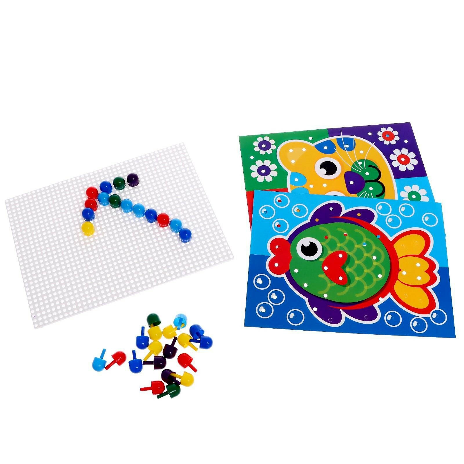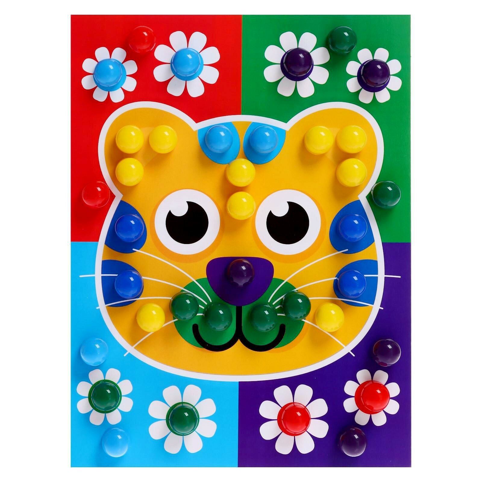 | Дополнительная информация | Круглая мозаика поможет в развитии мелкой моторики, нестандартного и пространственного мышления, внимания и изучении цветов. Внутри вы найдёте игровое поле, 2 двухсторонних карточки с 4 картинками и 60 пластиковых деталей. |