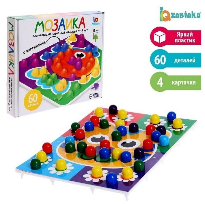Купить IQ-ZABIAKA Мозаика круглая, 60 элементов с карточками, 6 цветов