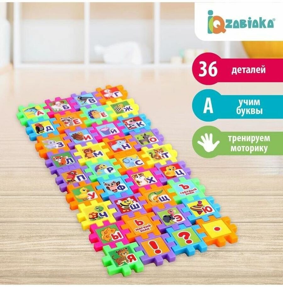 Мозаика-конструктор «Весёлый алфавит», 36 деталей, пазл, пластик, по методике Монтессори