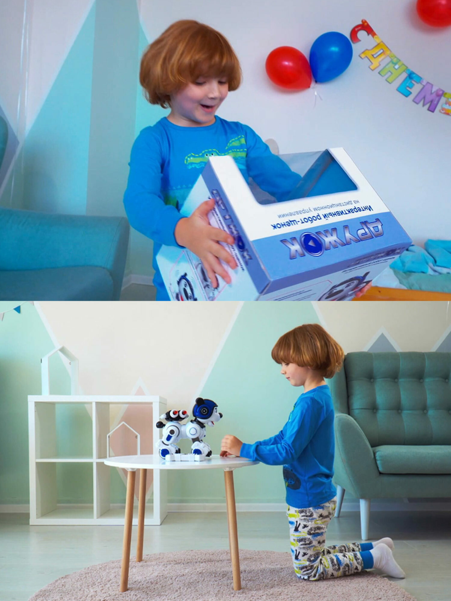 | Комплектация | игрушка животное «Дружок», снаряды (4 шт.), USB-шнур для зарядки аккумулятора, аккумулятор для игрушки (3.7В / 400 mAh), пульт дистанционного управления, инструкция |