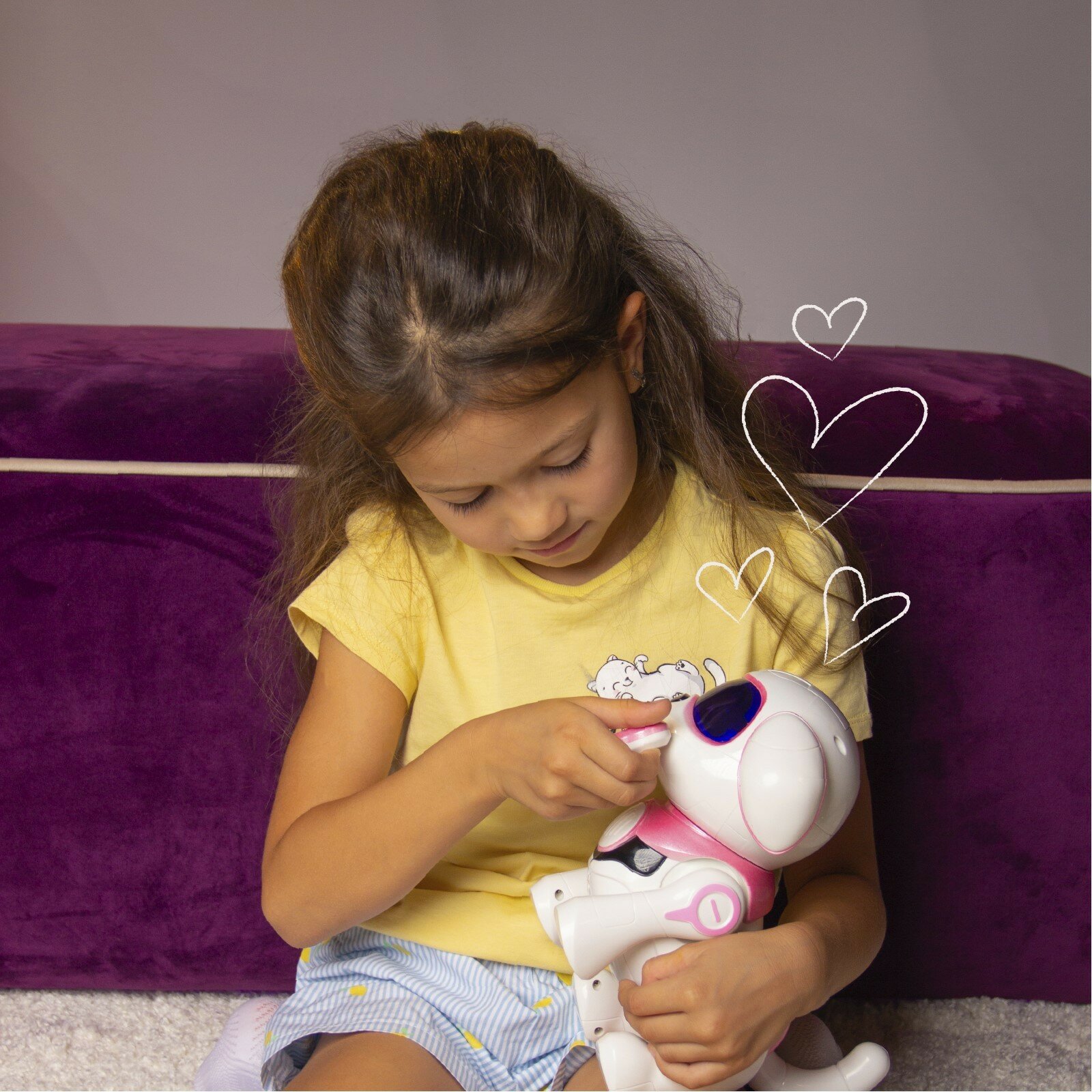 Купить Робот собака «Чаппи» IQ BOT, интерактивный: сенсорный, свет, звук, музыкальный, танцующий, на аккумуляторе, на русском языке, розовый