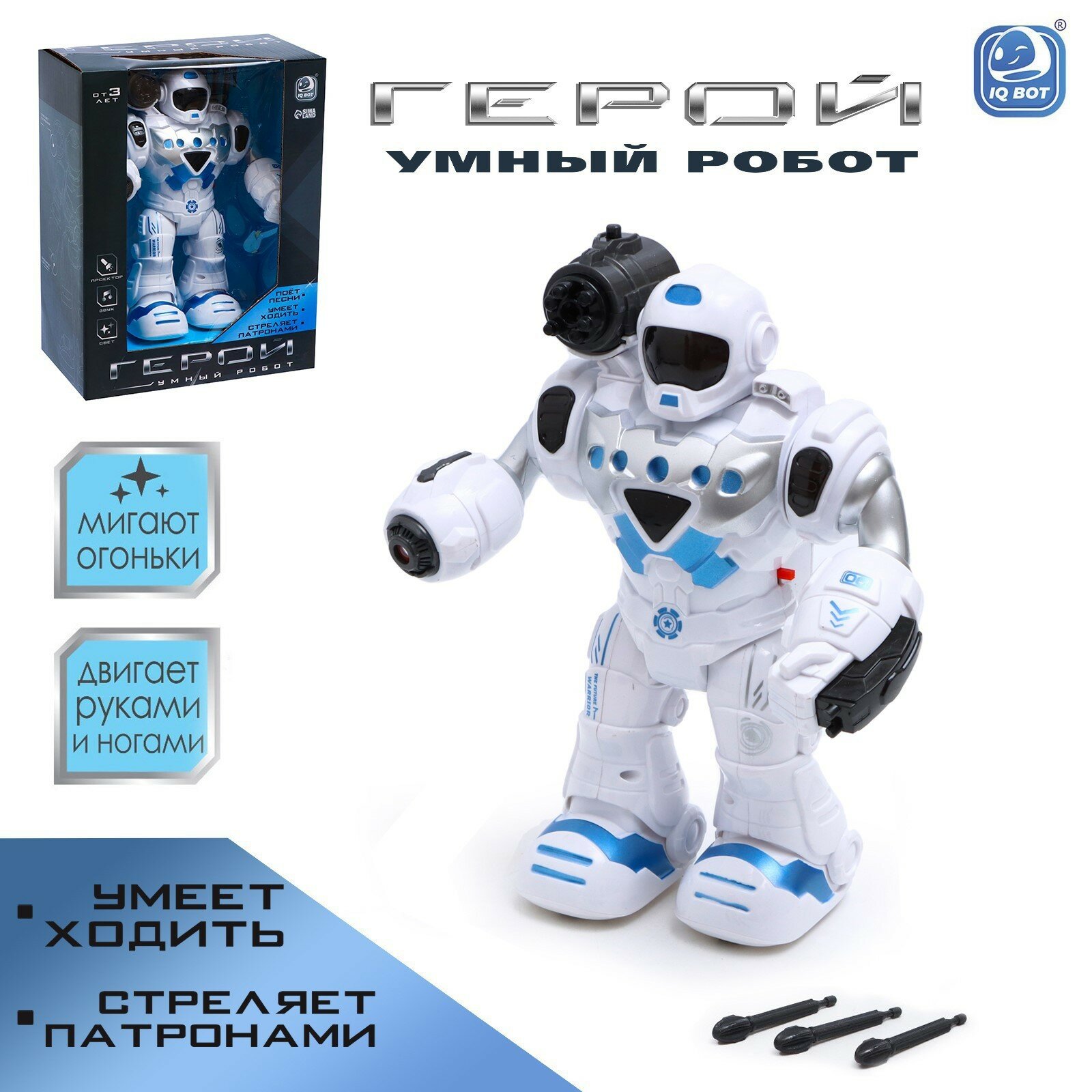 Робот «Герой», световые и звуковые эффекты, работает от батареек, цвет синий интересное: