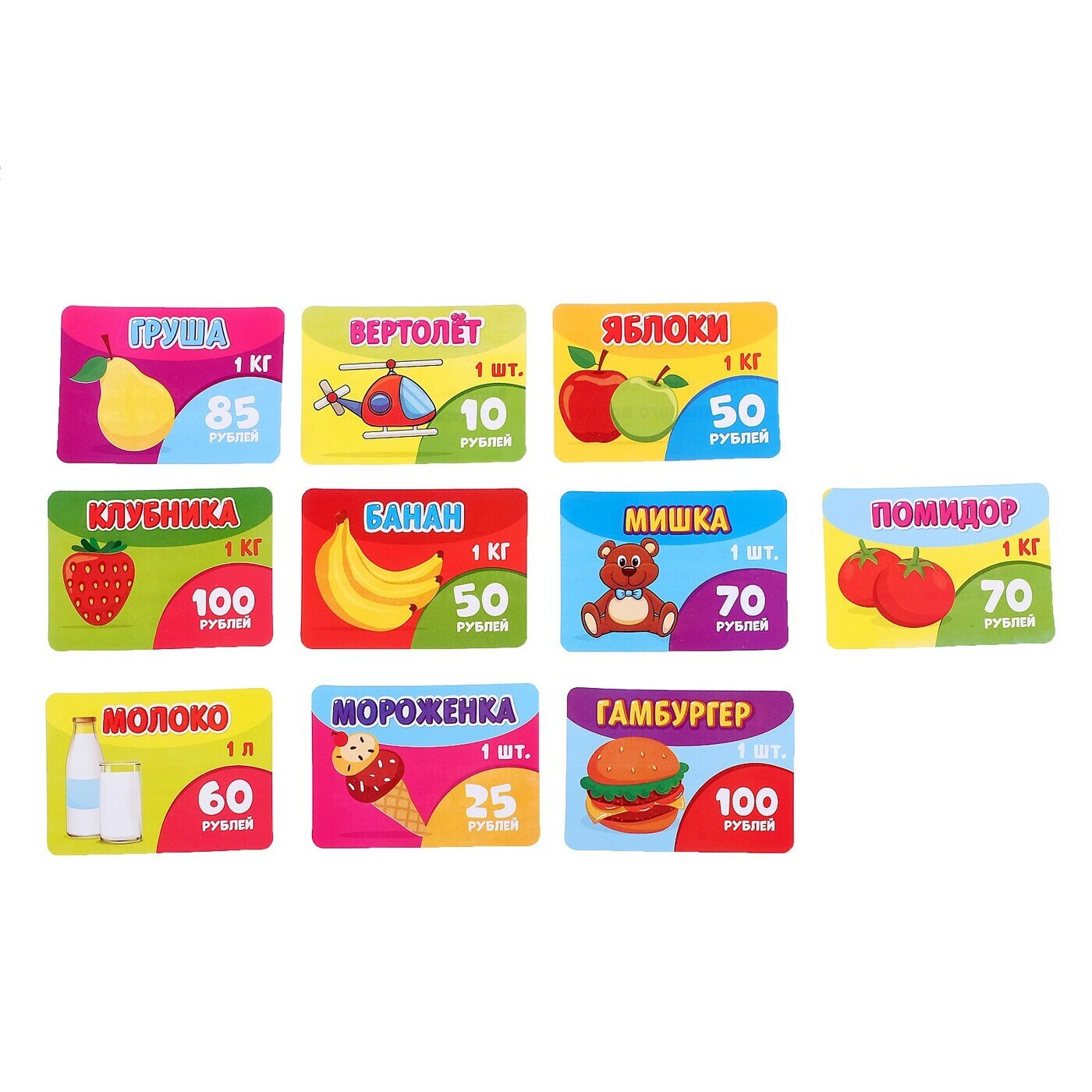 | Комплектация | Кассовый аппарат; 4 вида монет по 4 шт; 10 ценников; Банковская карта |
