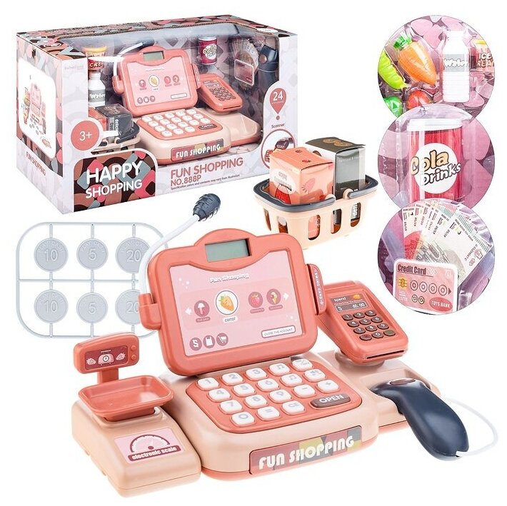 Купить Касса 888P "Веселый шопинг" на батарейках с аксессуарами, в коробке
