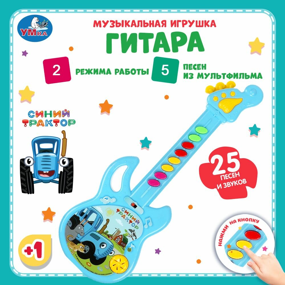 Музыкальная гитара игрушечная для детей синий трактор 25 песен и звуков интересное: