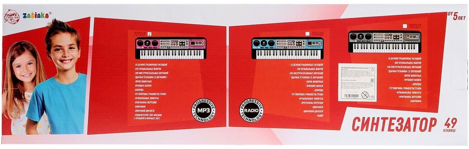 Синтезатор с радио "Музыкальный взрыв" 49 клавиш, работает от батареек, ZABIAKA