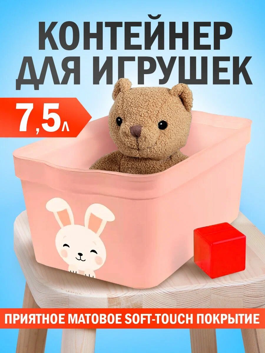 Контейнер для игрушек с крышкой 7,5 л, розовый зефир