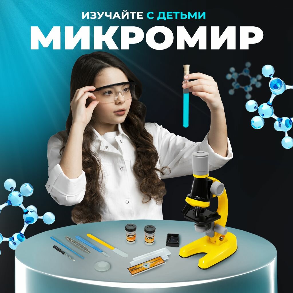 Микроскоп детский для школьника и детей, опыты и эксперименты для детей, набор для опытов