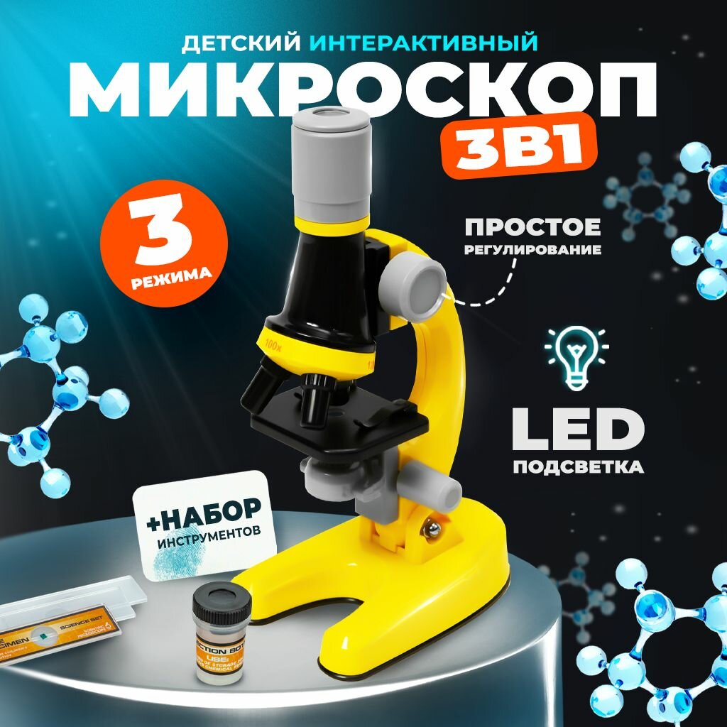 Микроскоп детский школьный для школьника и детей, опыты и эксперименты для детей, набор для опытов интересное: