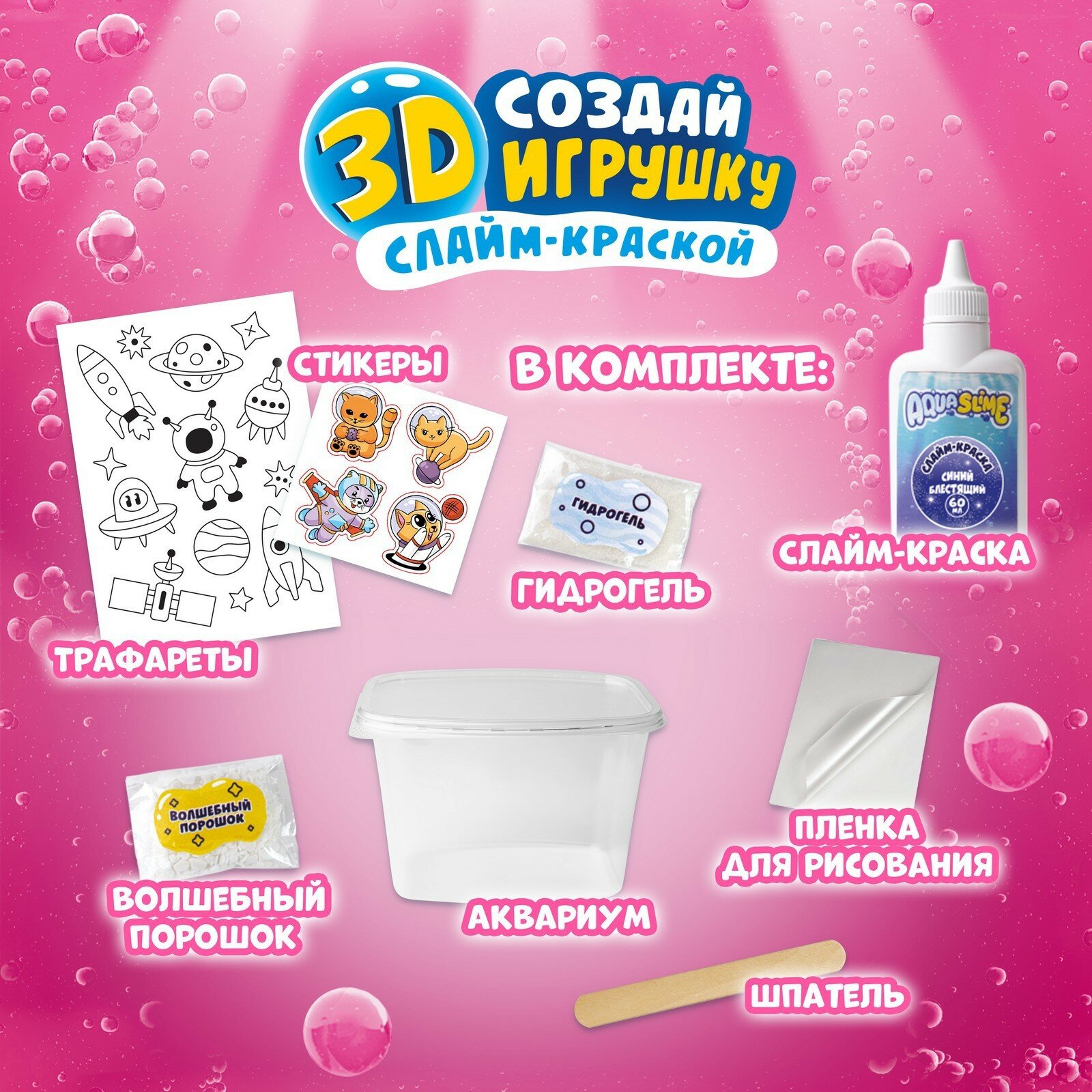 Купить Средний набор для творчества и опытов Aqua Slime (Аква Слайм) by Maryana (Likee) / Развивающая игра для создания 3D моделей из цветного геля