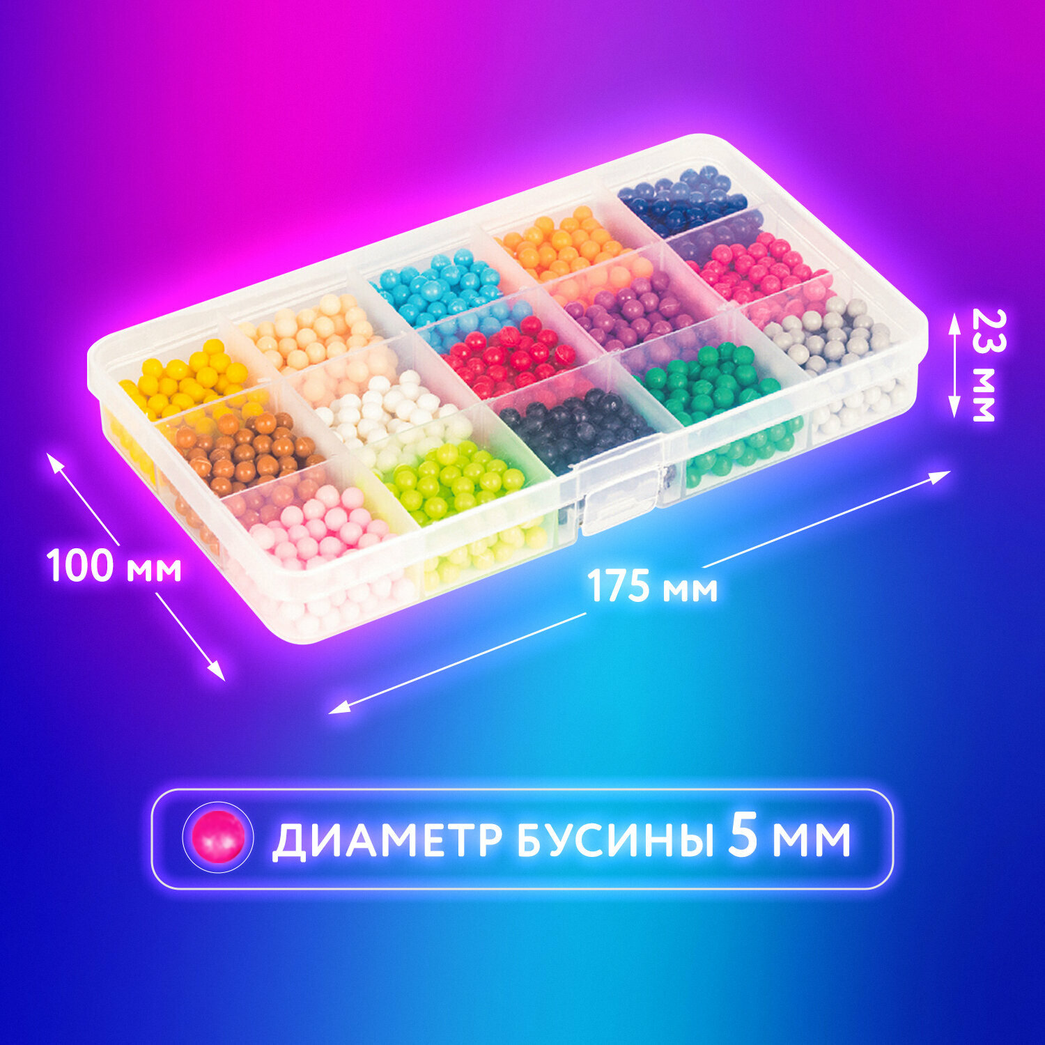 Комплект 5 шт, Аквамозаика, 15 цветов, 1500 бусин, в колорбоксе, юнландия, 663778