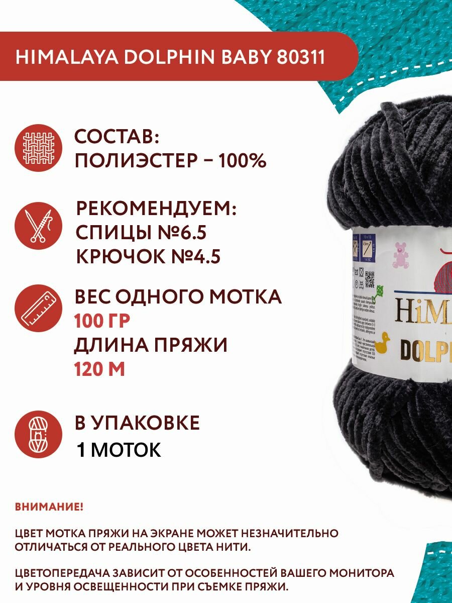 Пряжа Dolphin baby (HIMALAYA), черный - 80311, 100% полиэстер, 5 мотков, 100 г, 120 м.
