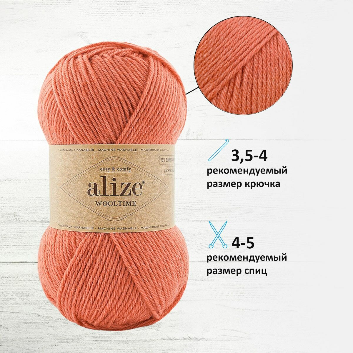 Пряжа для вязания Alize Wooltime, цвет 588 терракот, 100г, 200м, 5шт/упак
