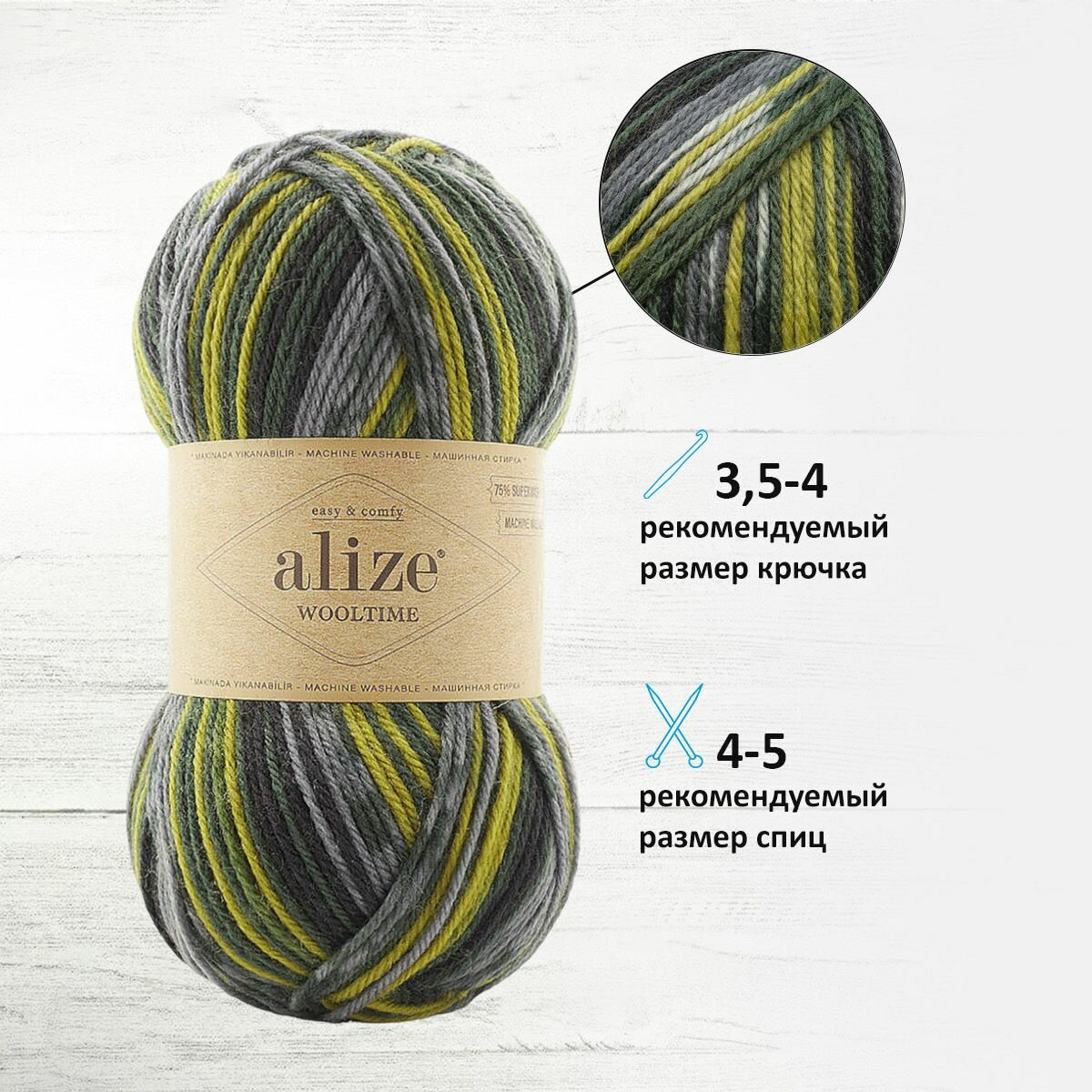 Пряжа Wooltime, Alize, принт - 11018, 75% SW шерсть, 25% полиамид, 5 мотков, 100 г., 200 м.