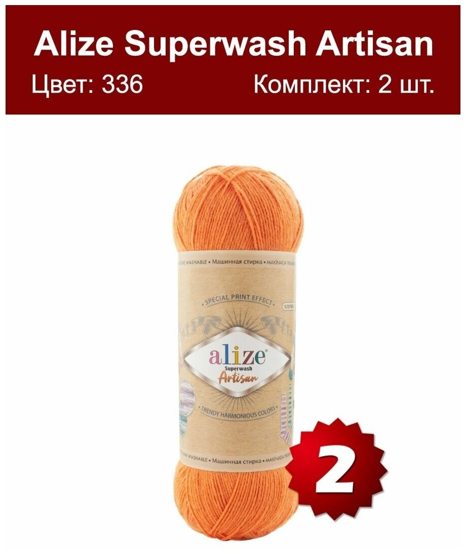 Пряжа Alize Superwash Artisan (Ализе Супервош Артизан) - 2 мотка, Оранжевый (336), 75% шерсть супервош, 25% полиамид, 420м/100г