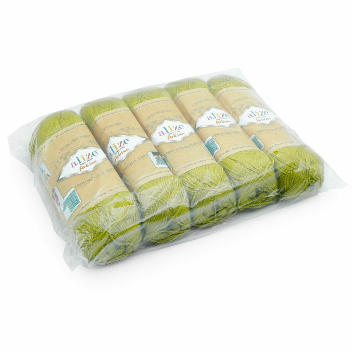 Пряжа SUPERWASH ARTISAN ALIZE, артишок - 274, 75% SW шерсть, 25% полиамид, 5 мотков, 100 г, 420 м.