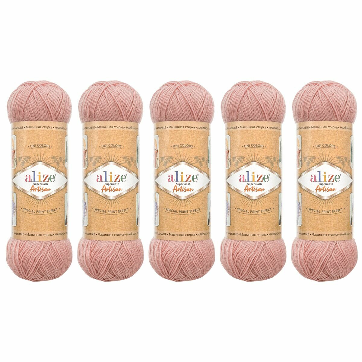 Пряжа Alize Superwash Artisan (Ализе Супервош Артизан) - 5 мотков, Розовый (178), 75% шерсть супервош, 25% полиамид, 420м/100г