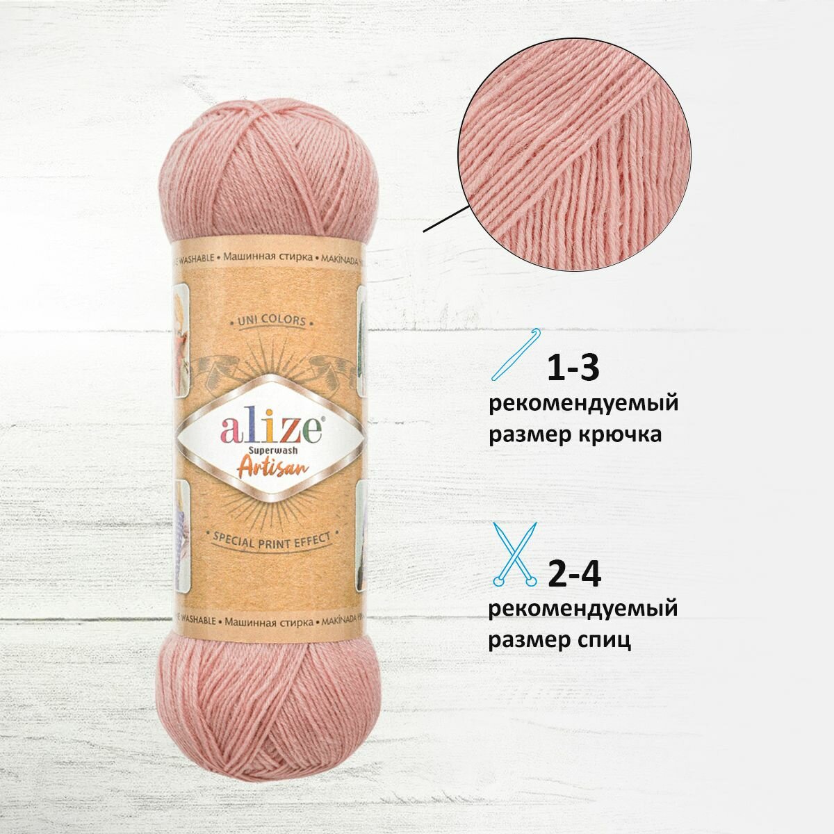 Пряжа Alize Superwash Artisan (Ализе Супервош Артизан) - 2 мотка, Розовый (178), 75% шерсть супервош, 25% полиамид, 420м/100г