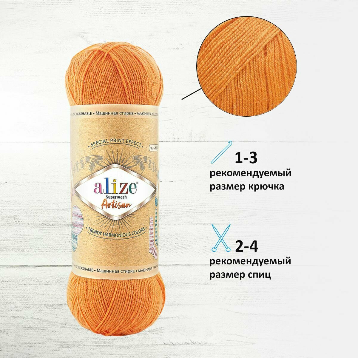 Пряжа Alize Superwash Artisan (Ализе Супервош Артизан) - 1 моток, Оранжевый (336), 75% шерсть супервош, 25% полиамид, 420м/100г