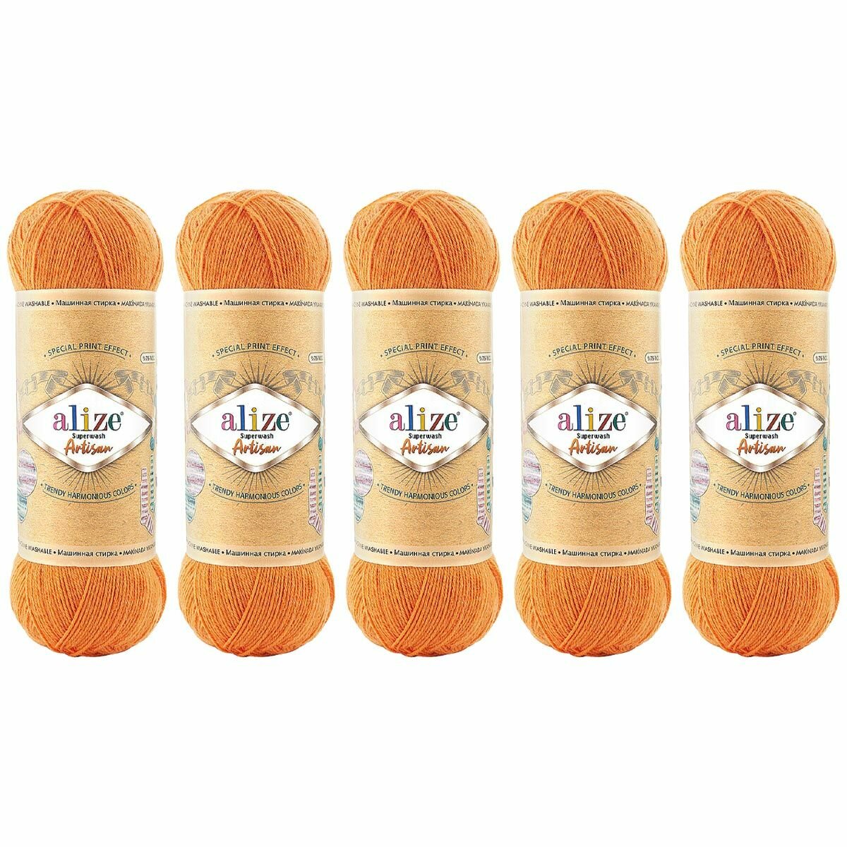 Пряжа Alize Superwash Artisan (Ализе Супервош Артизан) - 5 мотков, Оранжевый (336), 75% шерсть супервош, 25% полиамид, 420м/100г