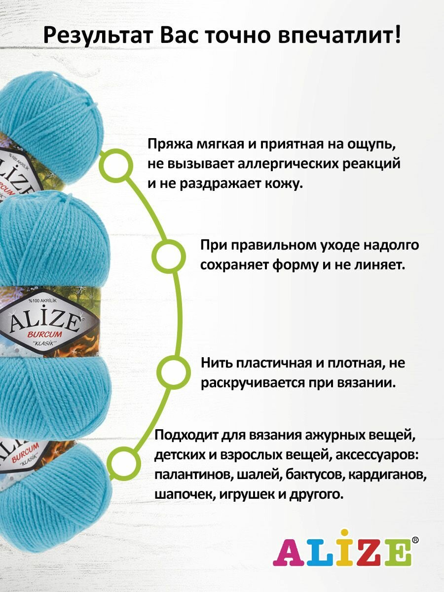 Пряжа для вязания ALIZE 'BURCUM KLASIK' 100г, 210м (100% Акрил) (164 лазурный), 5 мотков