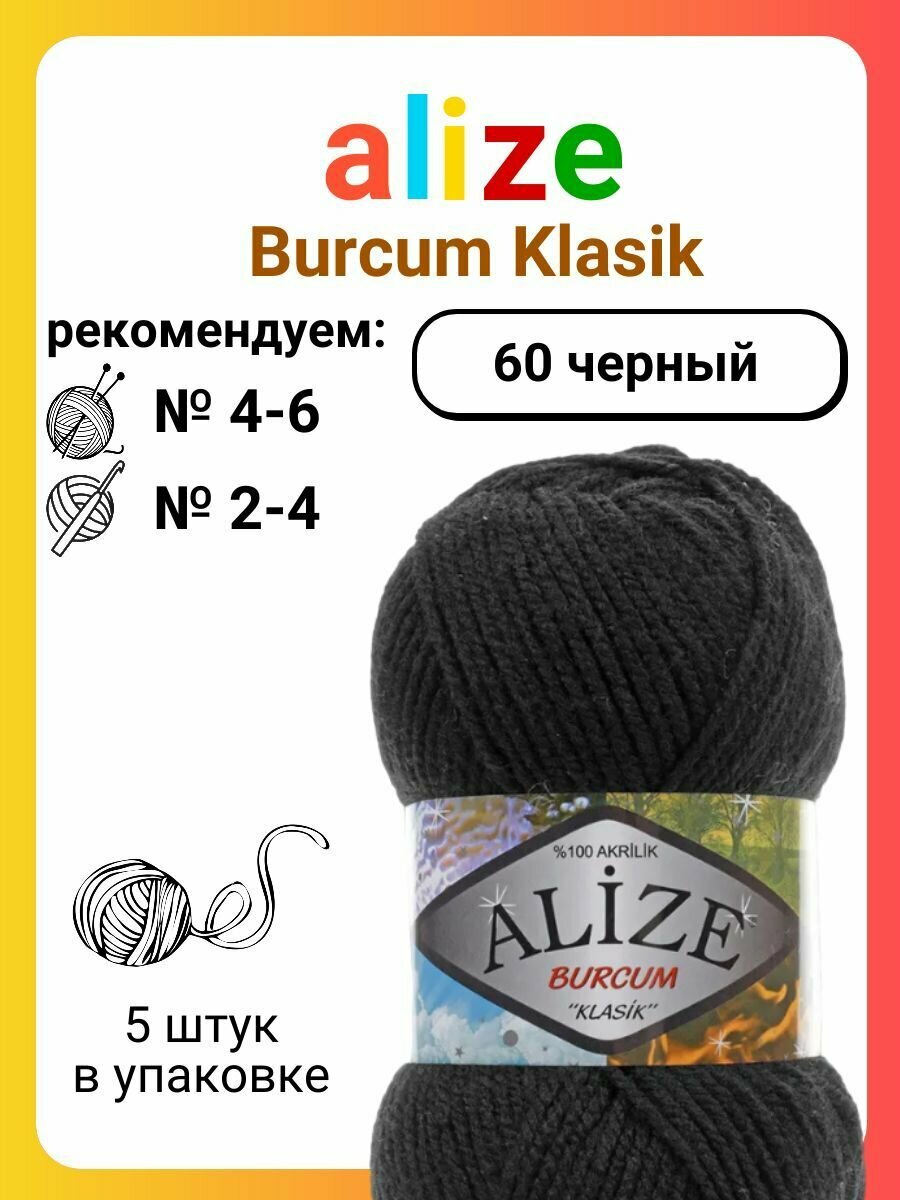 Купить Пряжа для вязания ALIZE 'BURCUM KLASIK' 100гр. 210м (100% Акрил) (60 черный), 5 мотков