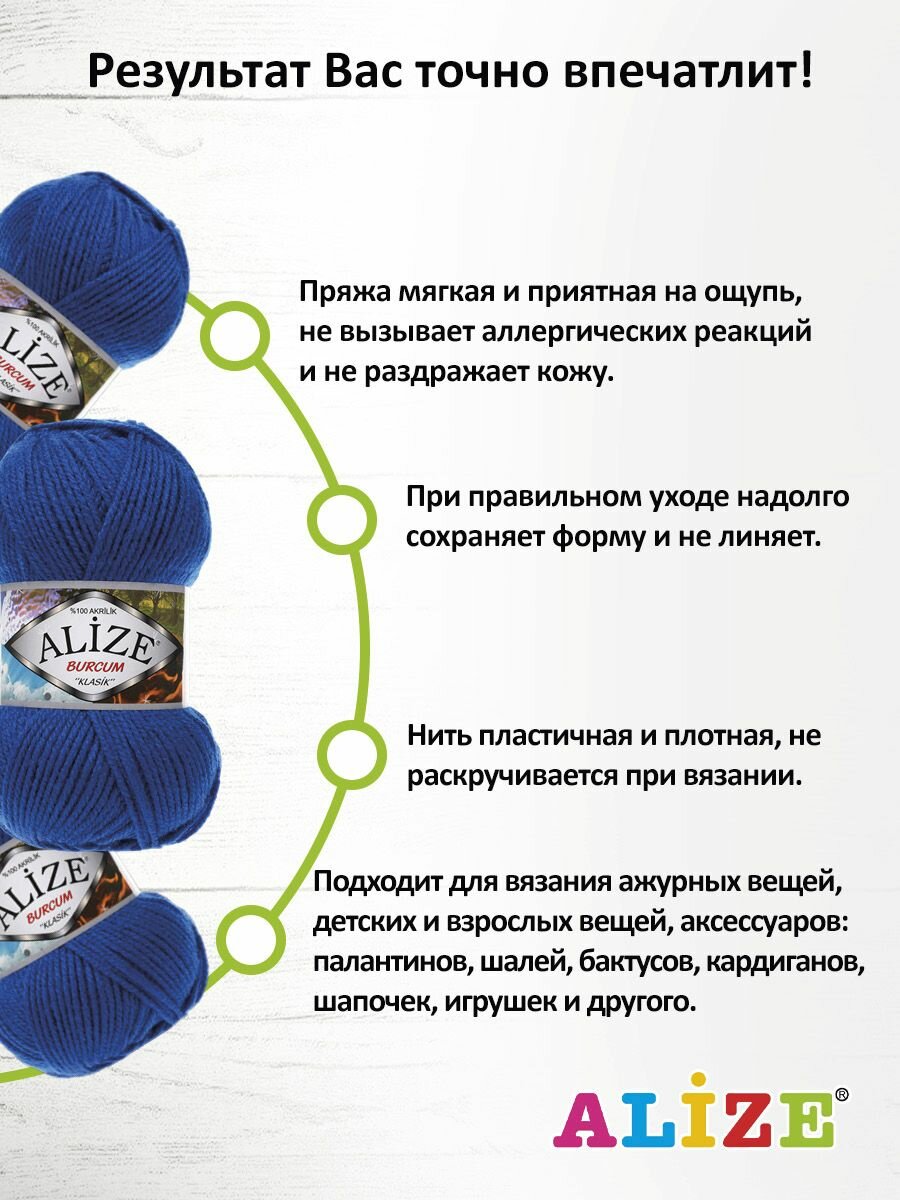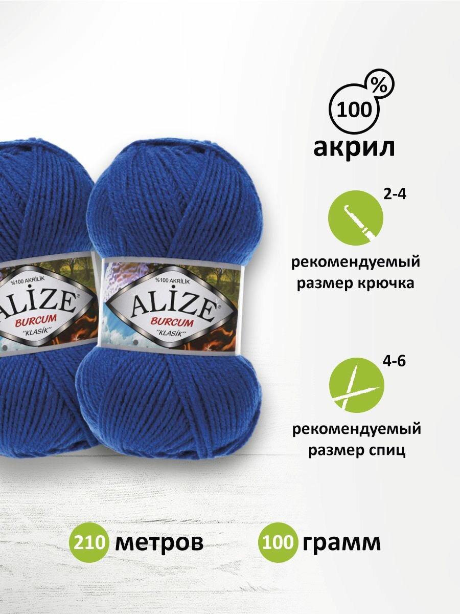 Пряжа ALIZE "Burcum Klasik", 100 г, 210 м, 100% акрил, цвет 289 синий, 5 мотков