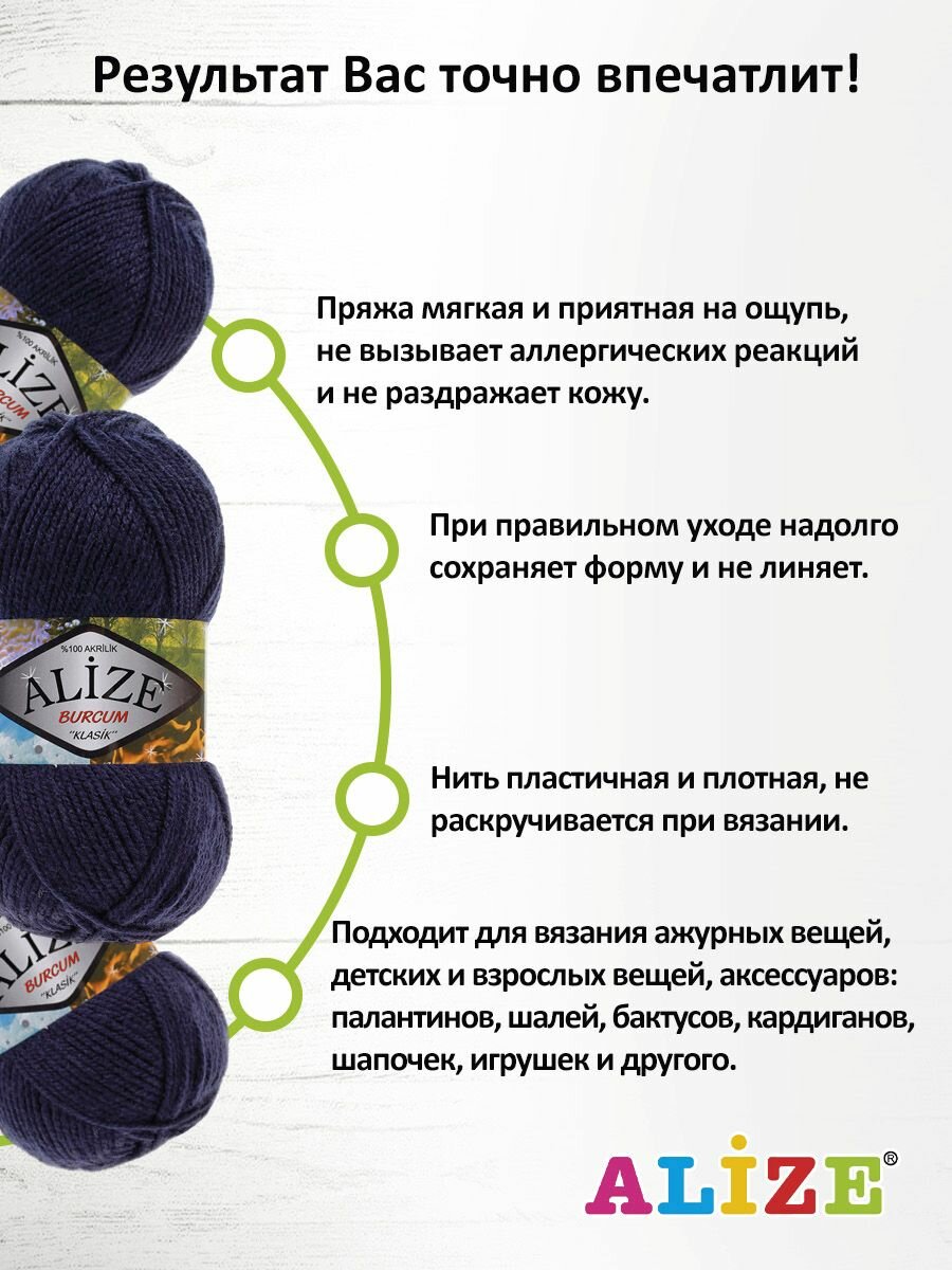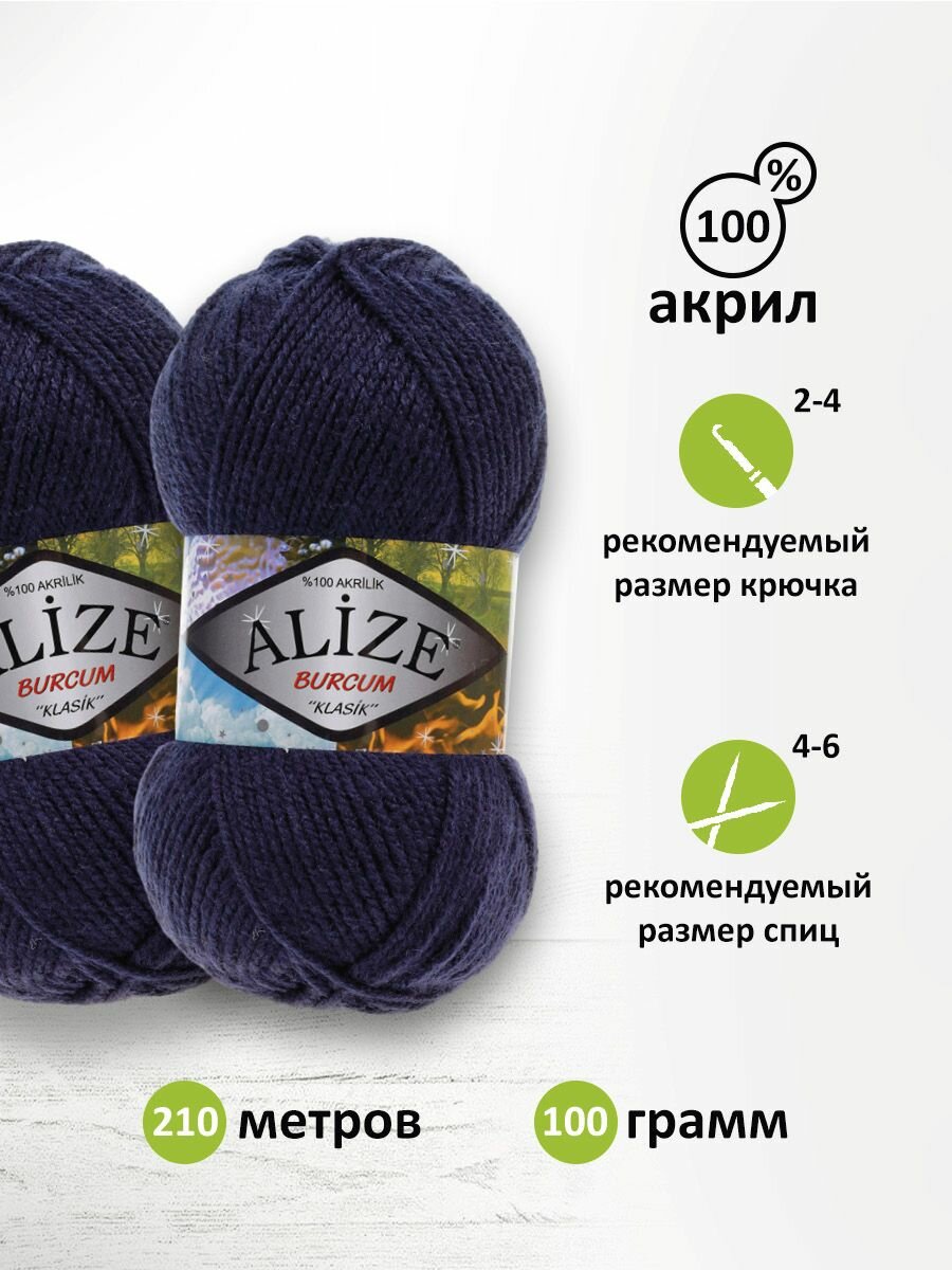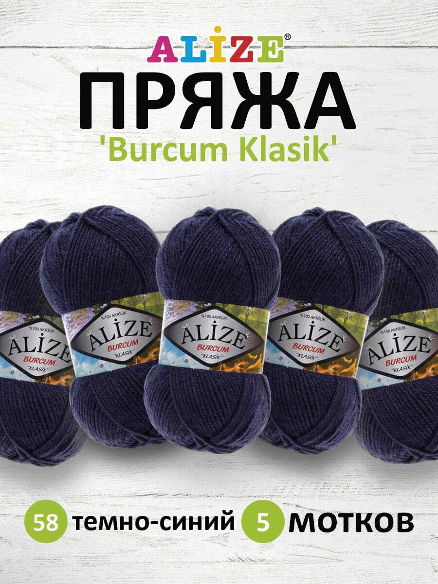 Пряжа ALIZE "BURCUM KLASIK", 100 гр 210 м, 100% Акрил, 58 темно-синий, 5 шт