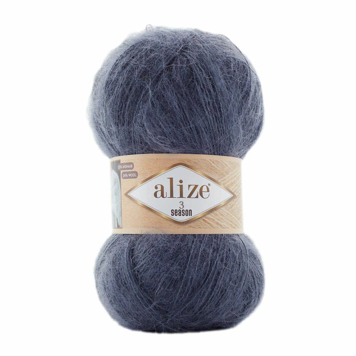 Пряжа 3 SEASON Alize, синий - 409, 51% акрил, 25% мохер, 24% шерсть, 5 мотков, 100 г, 500 м.