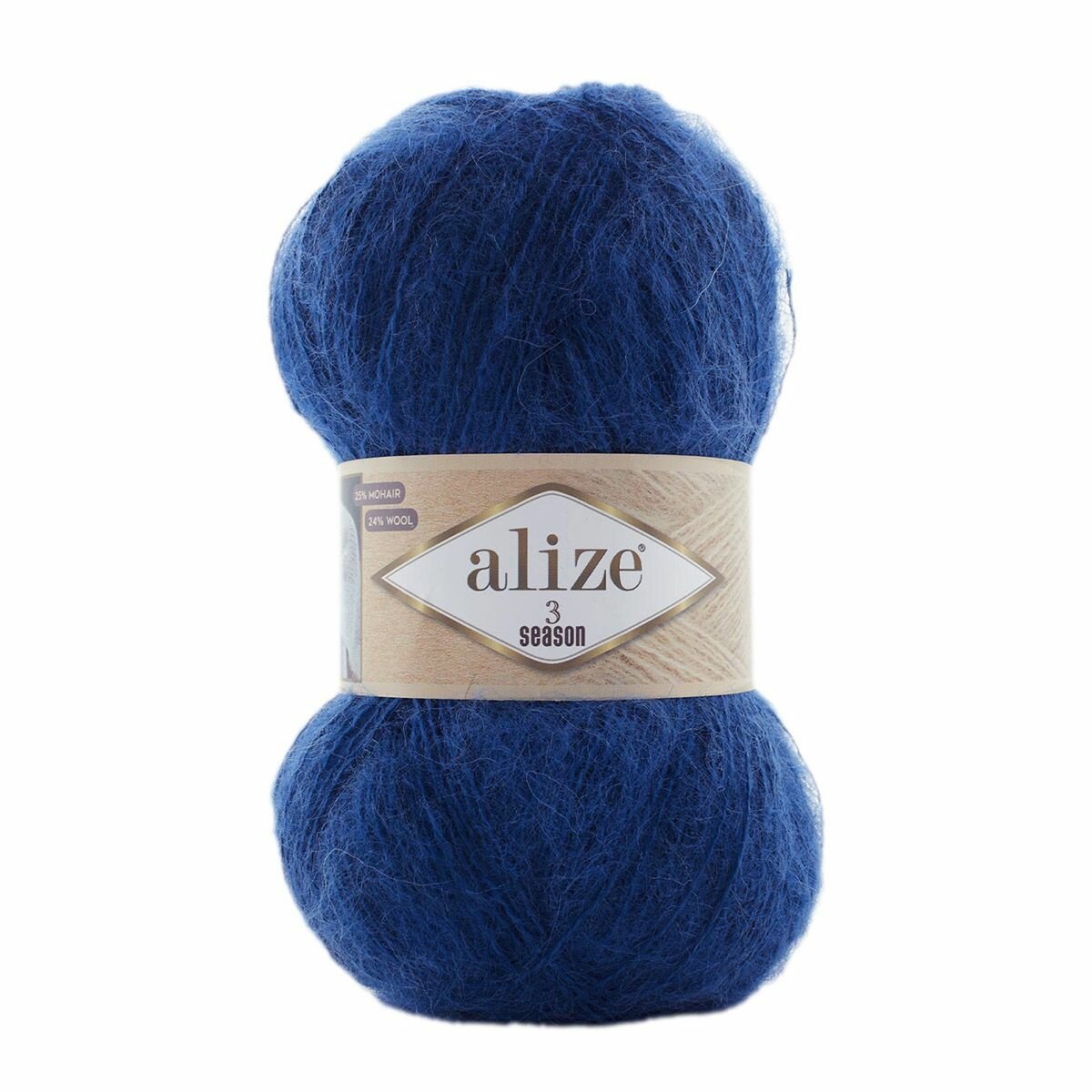 Пряжа для вязания ALIZE '3 SEASON', 100г, 500м (25% мохер, 24% шерсть, 51% акрил) (409 синий), 5 мотков