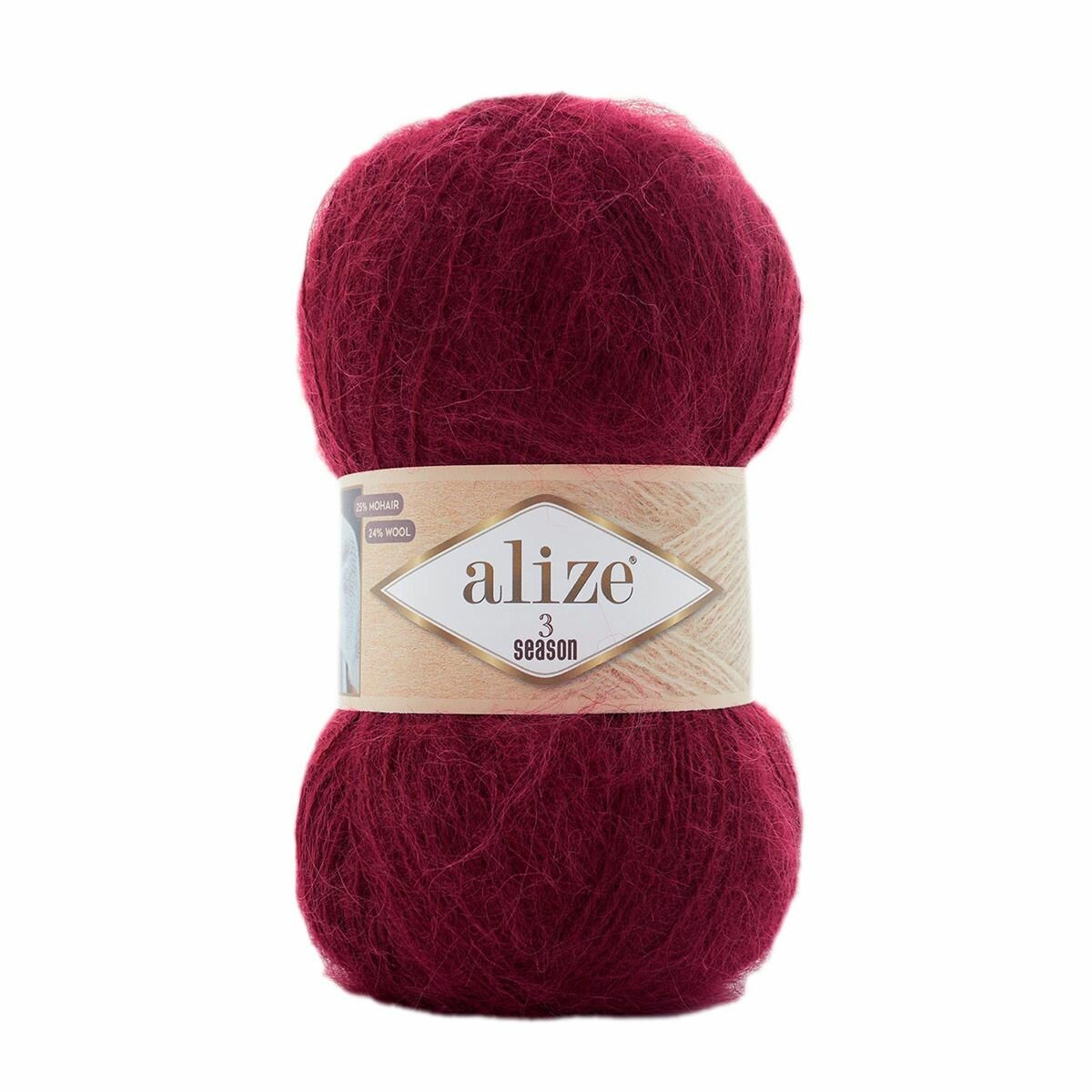 Пряжа Alize 3 Season бордовый (57), 25%мохер/24%шерсть/51%акрил, 500м, 100г, 3шт