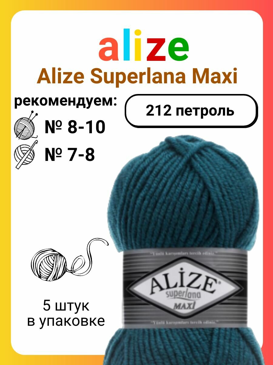 Пряжа Alize Superlana Maxi 212 петроль, 100 г, 100 м, 5 штук