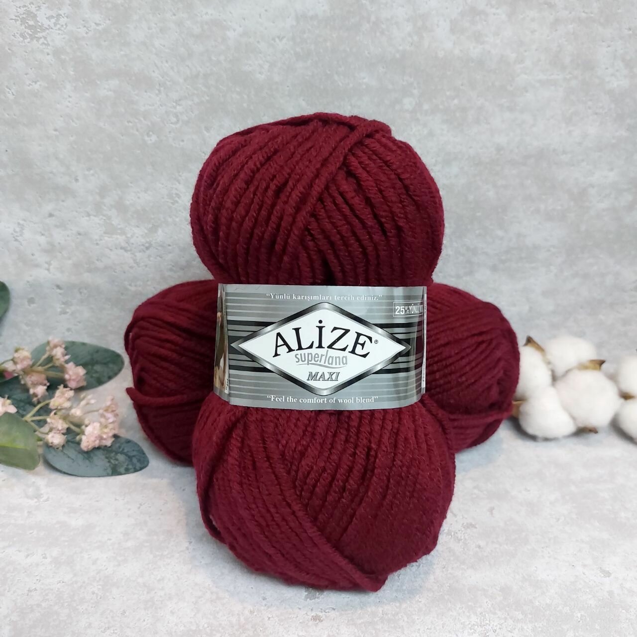 Купить Пряжа Alize Superlana Maxi бордовый (57), 25%шерсть/75%акрил, 100м, 100г, 1шт