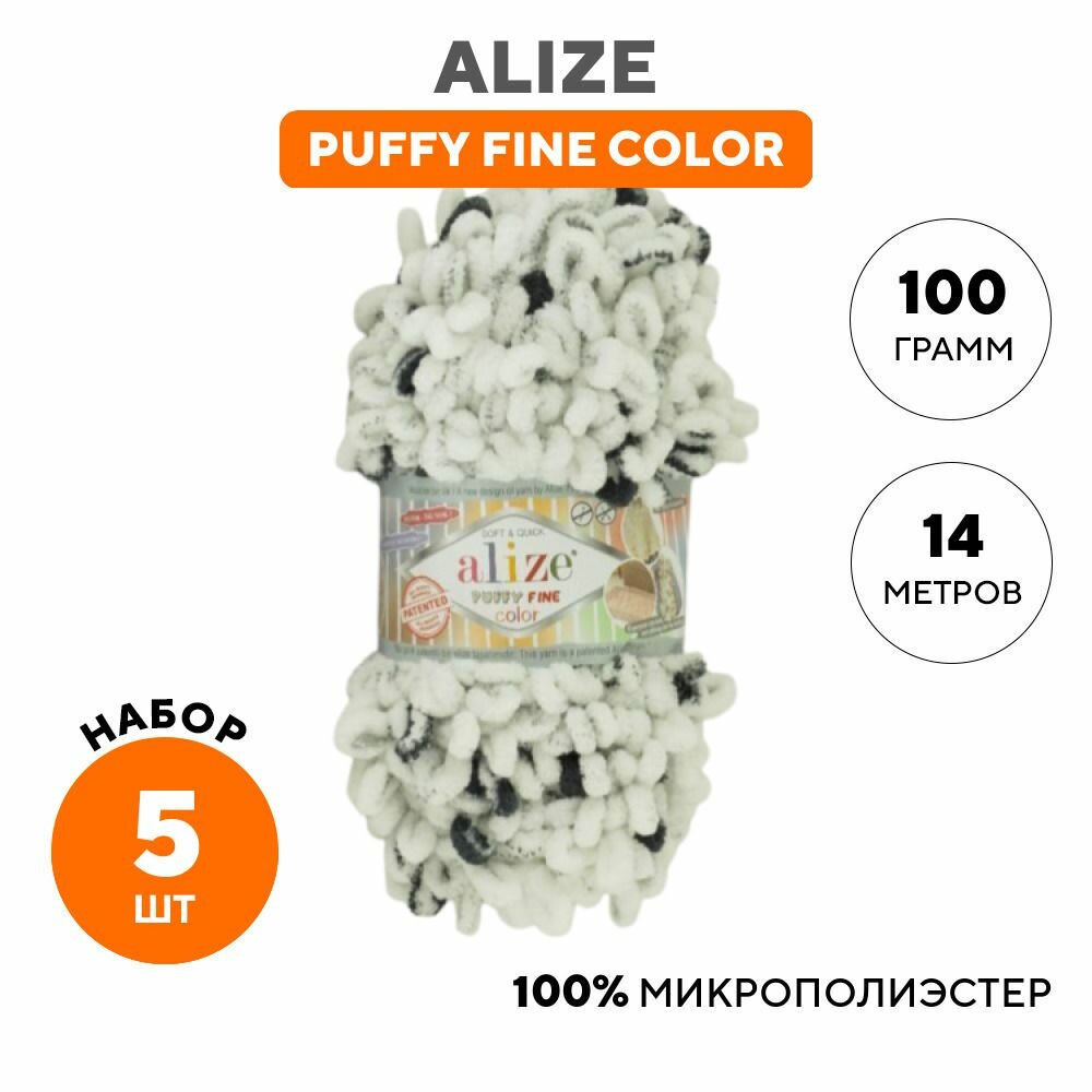 Пряжа для вязания плюшевая с петельками Alize Puffy Fine Color, цвет 6313, 100г, 14,5м, 5 шт/упак