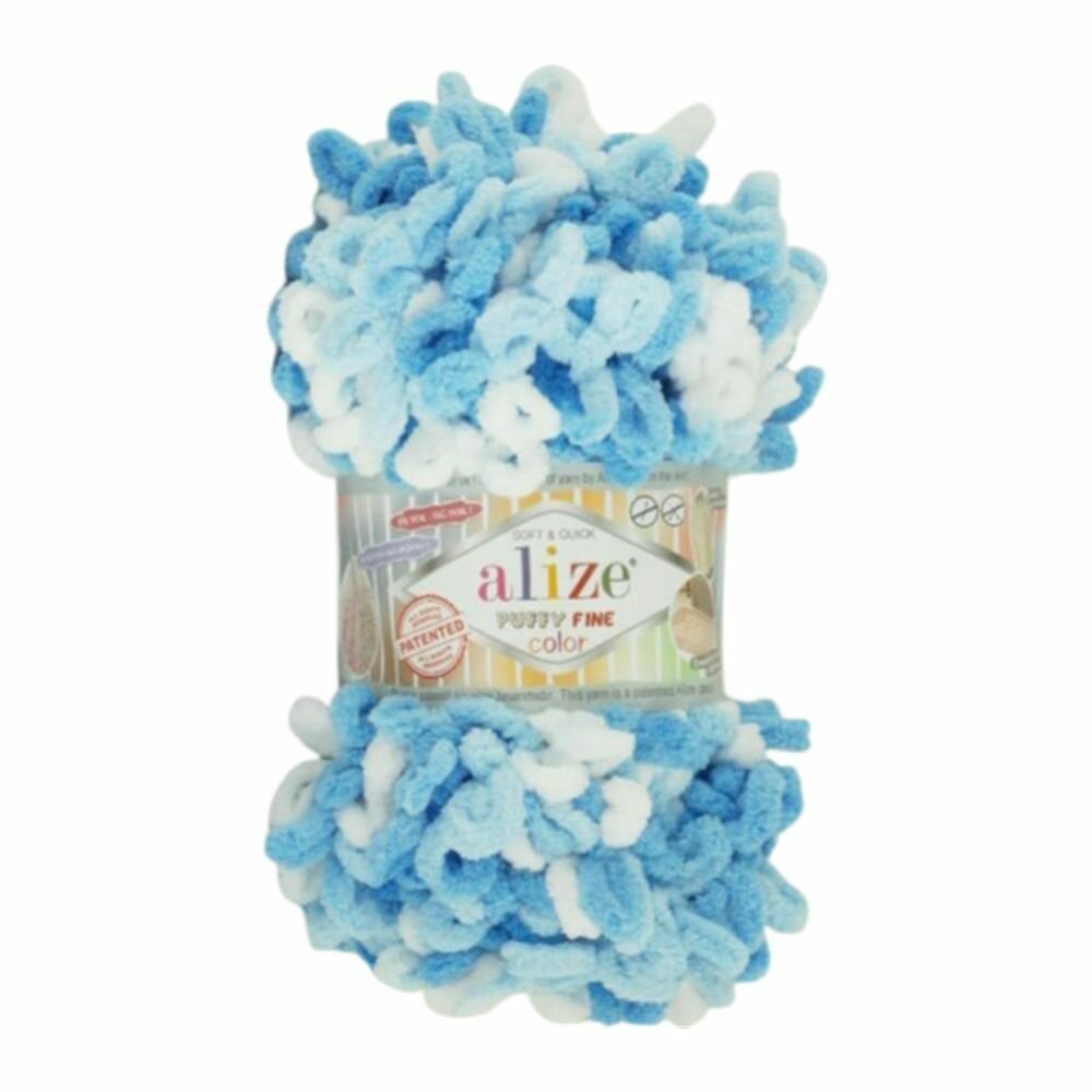 Пряжа PUFFY FINE COLOR (Alize), голубой принт - 6371, 100% микрополиэстер, 5 мотков, 100 г, 14 м.