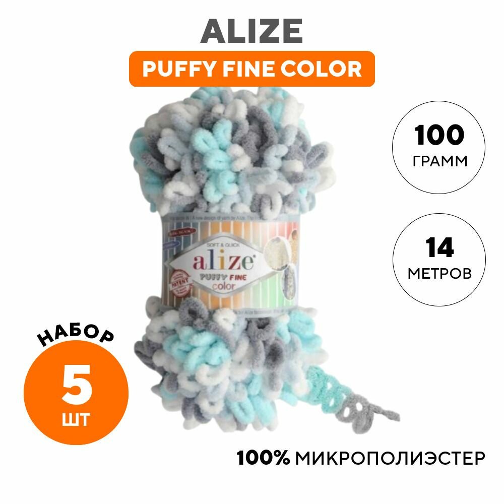 Пряжа для вязания плюшевая с петельками Alize Puffy Fine Color, цвет 6313, 100г, 14,5м, 5 шт/упак