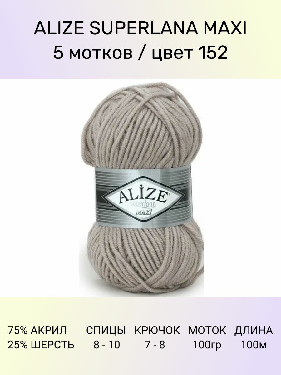Пряжа Alize Superlana Maxi 466 темный беж (100г/100м, упаковка 5 мотков)