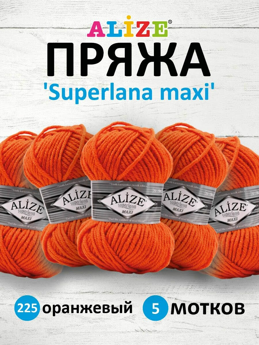 Пряжа ALIZE SUPERLANA MAXI, оранж - 225, 25% шерсть, 75% акрил, 5 мотков, 100 г, 100 м.