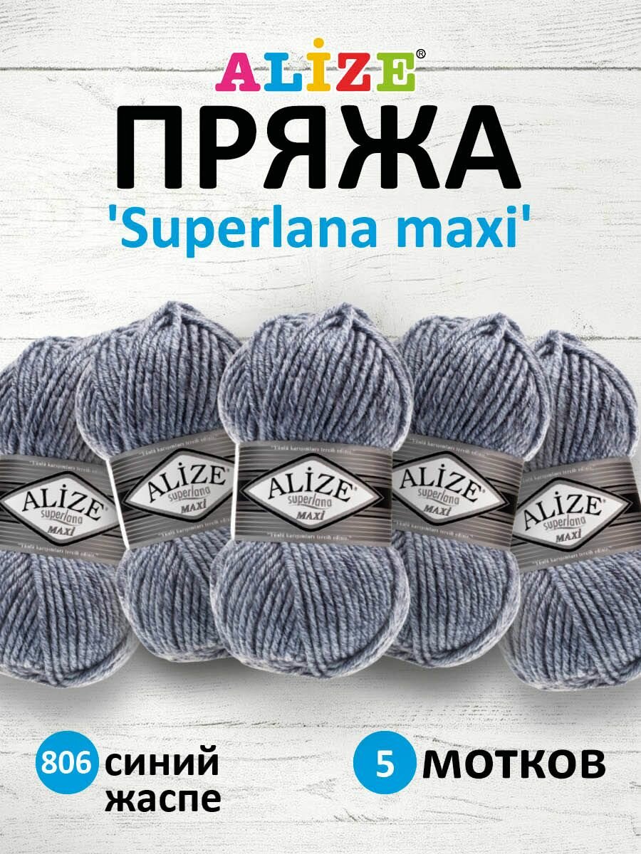 Купить Пряжа для вязания ALIZE 'Superlana maxi', 100г, 100м (75% акрил, 25% шерсть), ТУ (806 синий жаспе), 5 мотков