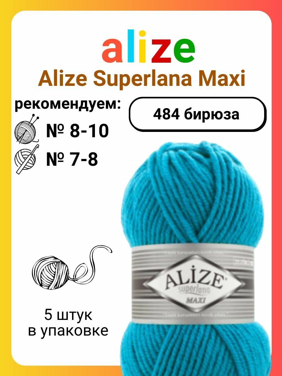 Купить Пряжа Alize Superlana Maxi бирюзовый (484), 25%шерсть/75%акрил, 100м, 100г, 5шт