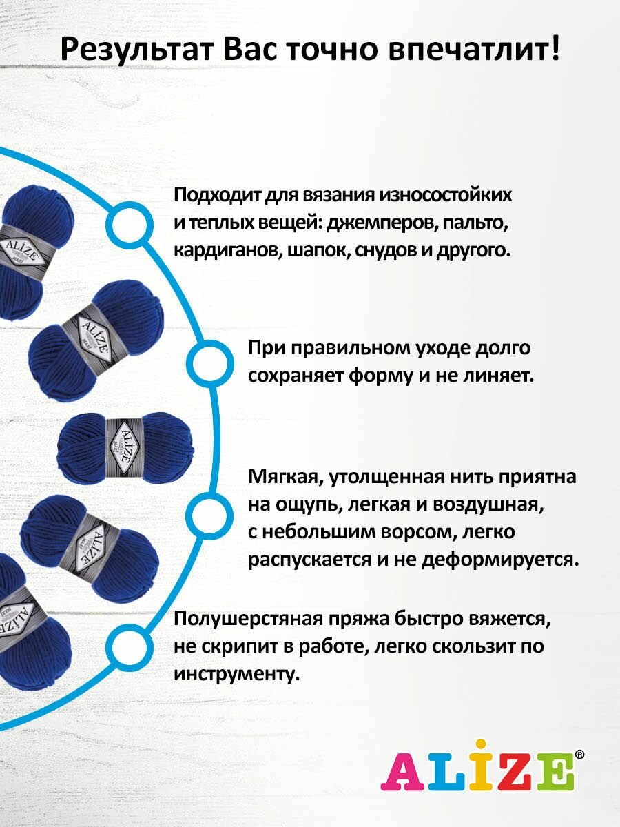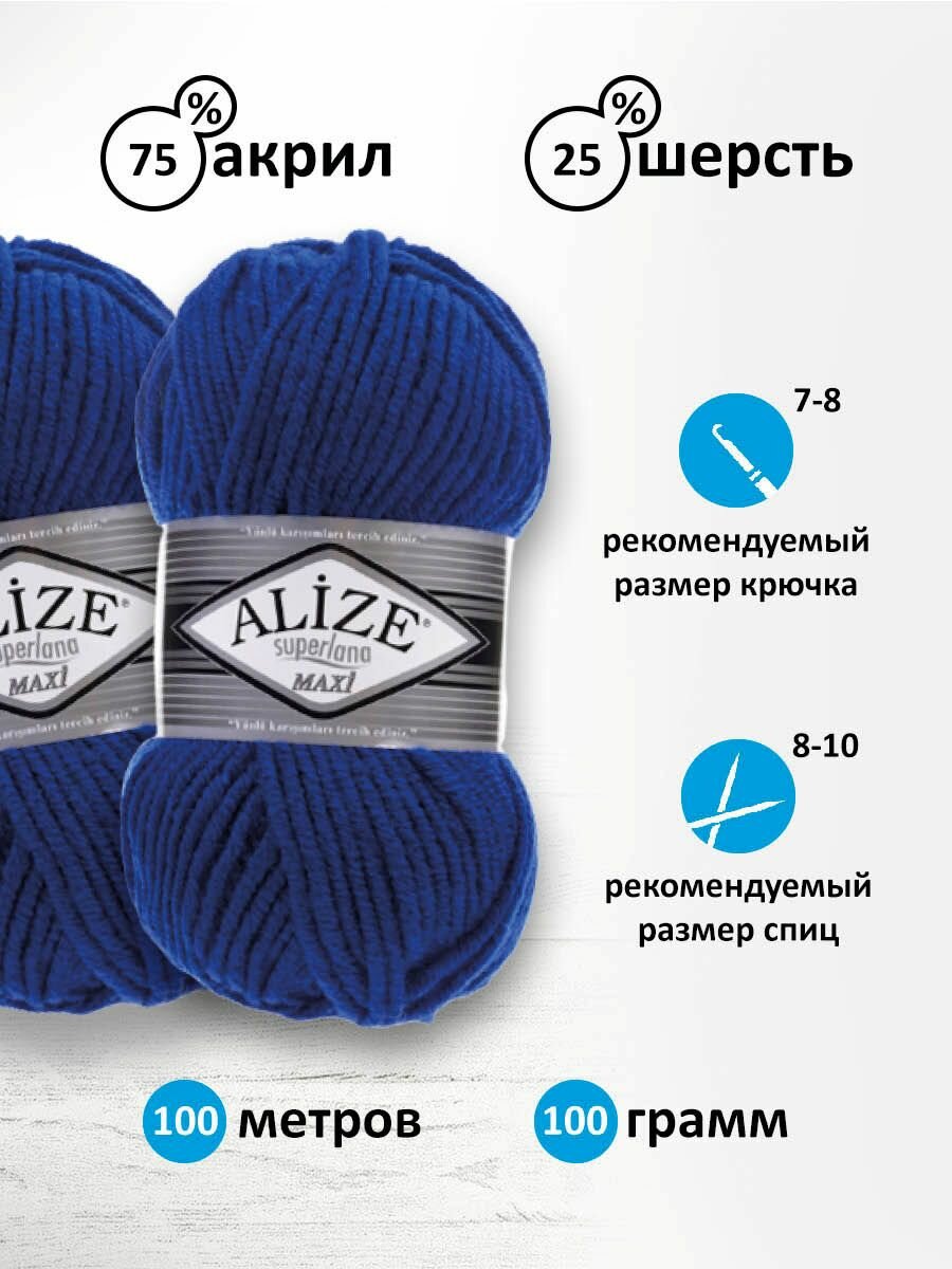 Пряжа ALIZE Superlana maxi Ализе Суперлана Полушерсть: 141 (т. василек), 1 шт 100 м 100 г, 25% шерсть , 75% акрил